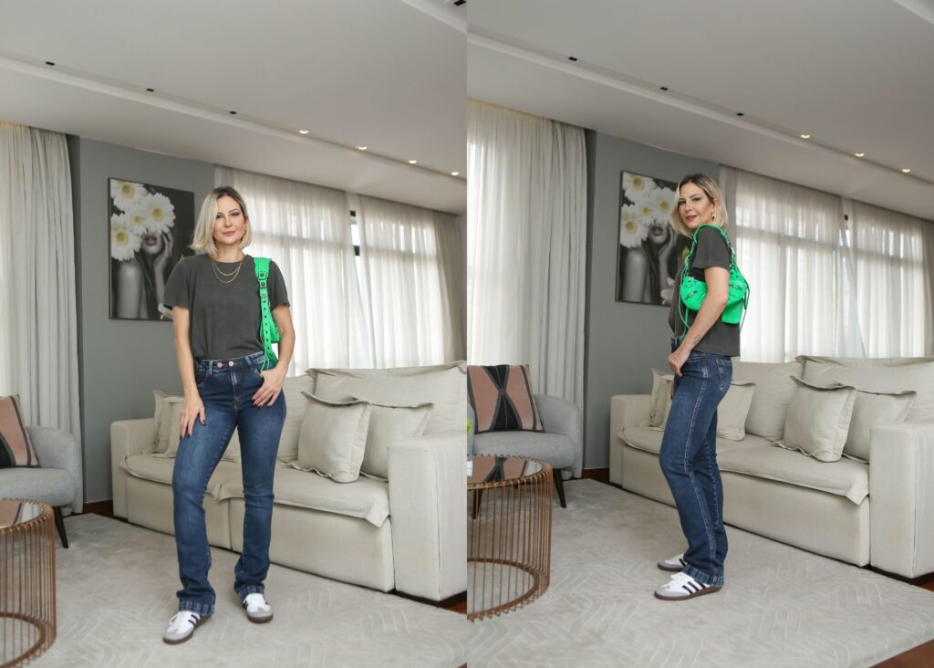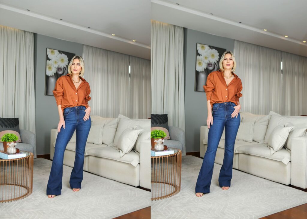 Outro ponto positivo da calça jeans flare é que ela ajuda a alongar a silhueta, pois a abertura na barra cria uma linha vertical que dá a impressão de pernas mais longas. Além disso, ela é uma ótima opção para quem deseja disfarçar as coxas mais grossas, já que a abertura na barra equilibra a silhueta.