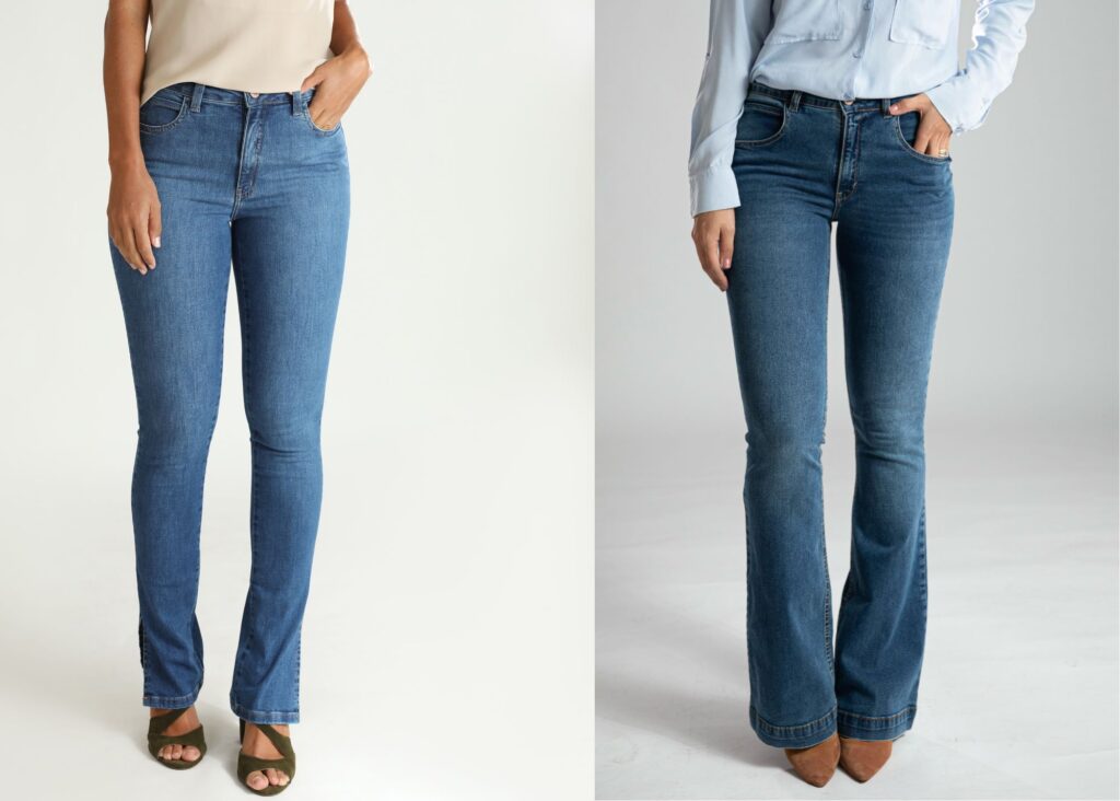 Calça jeans bootcut: essa opção equilibra as proporções e é perfeita para criar um visual clássico e polido. Combine com saltos para um toque extra de elegância.